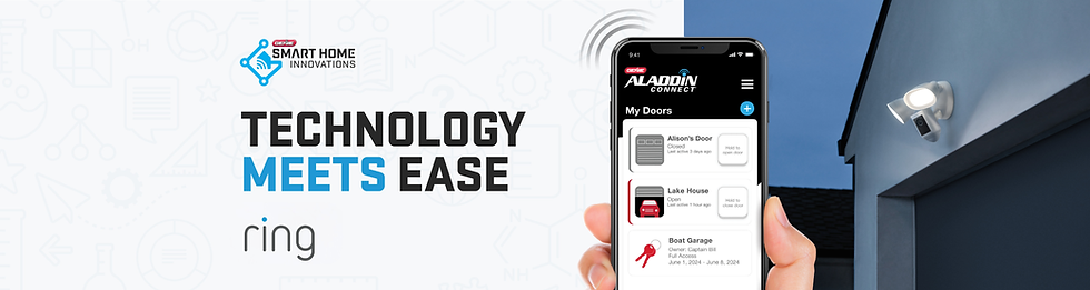 Ring helps make home security simple, smart, and reliable. Built on a mission to make neighborhoods safer, Ring Cameras offer HD video, motion alerts, two-way talk, and night vision - helping you stay connected to what matters most, no matter where you are. When paired with Aladdin Connect, your home’s visibility and control work together seamlessly. You can view live footage, receive real-time notifications, and even automate actions across your devices for smarter protection and added convenience. What began as a simple idea in a garage has grown into an innovative security solution trusted by millions of homeowners. With Ring, your home stays safe, smart, and always within reach.